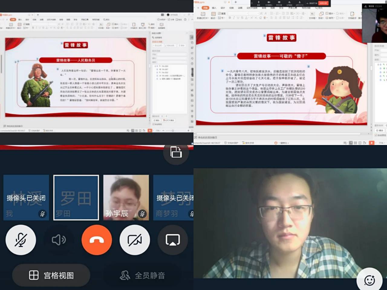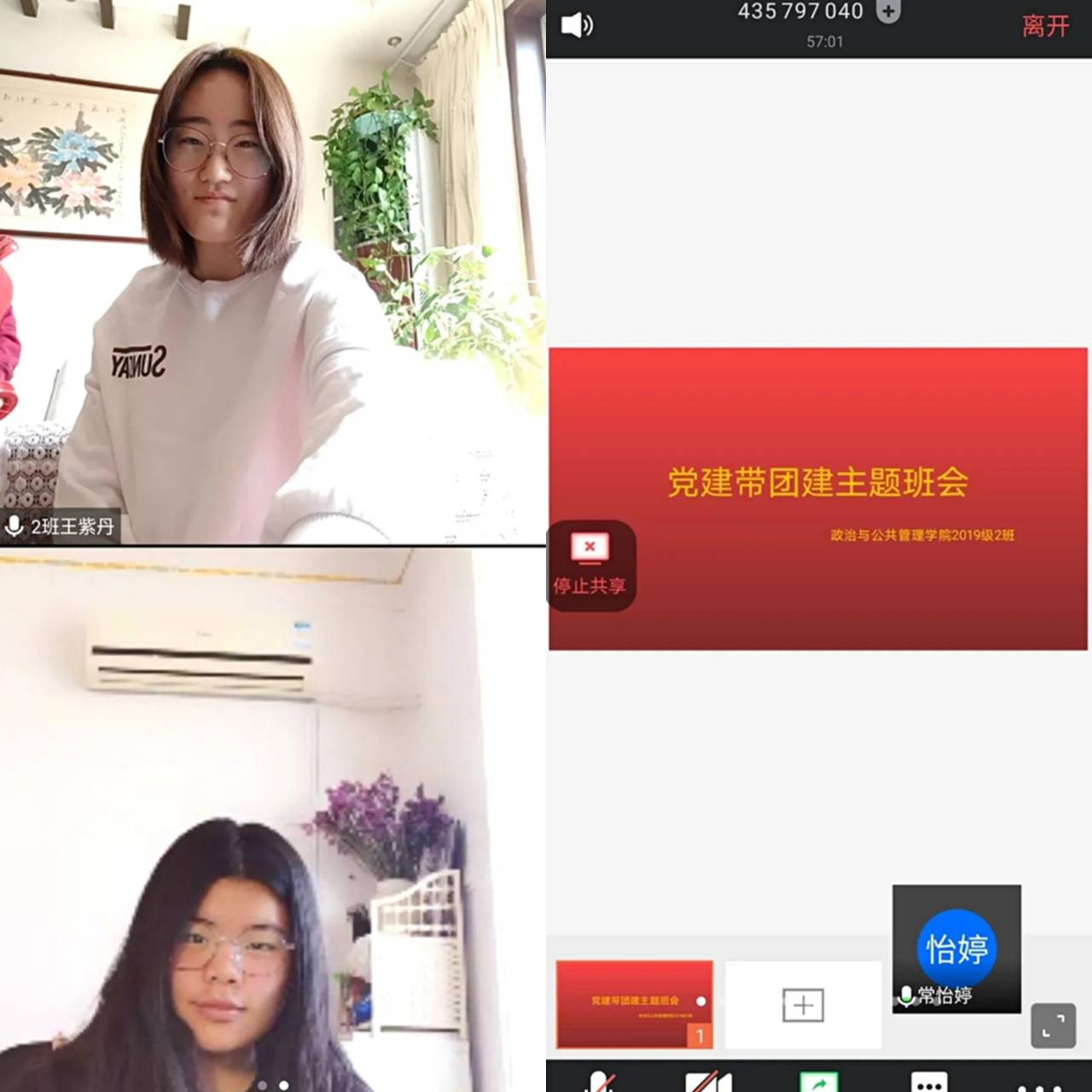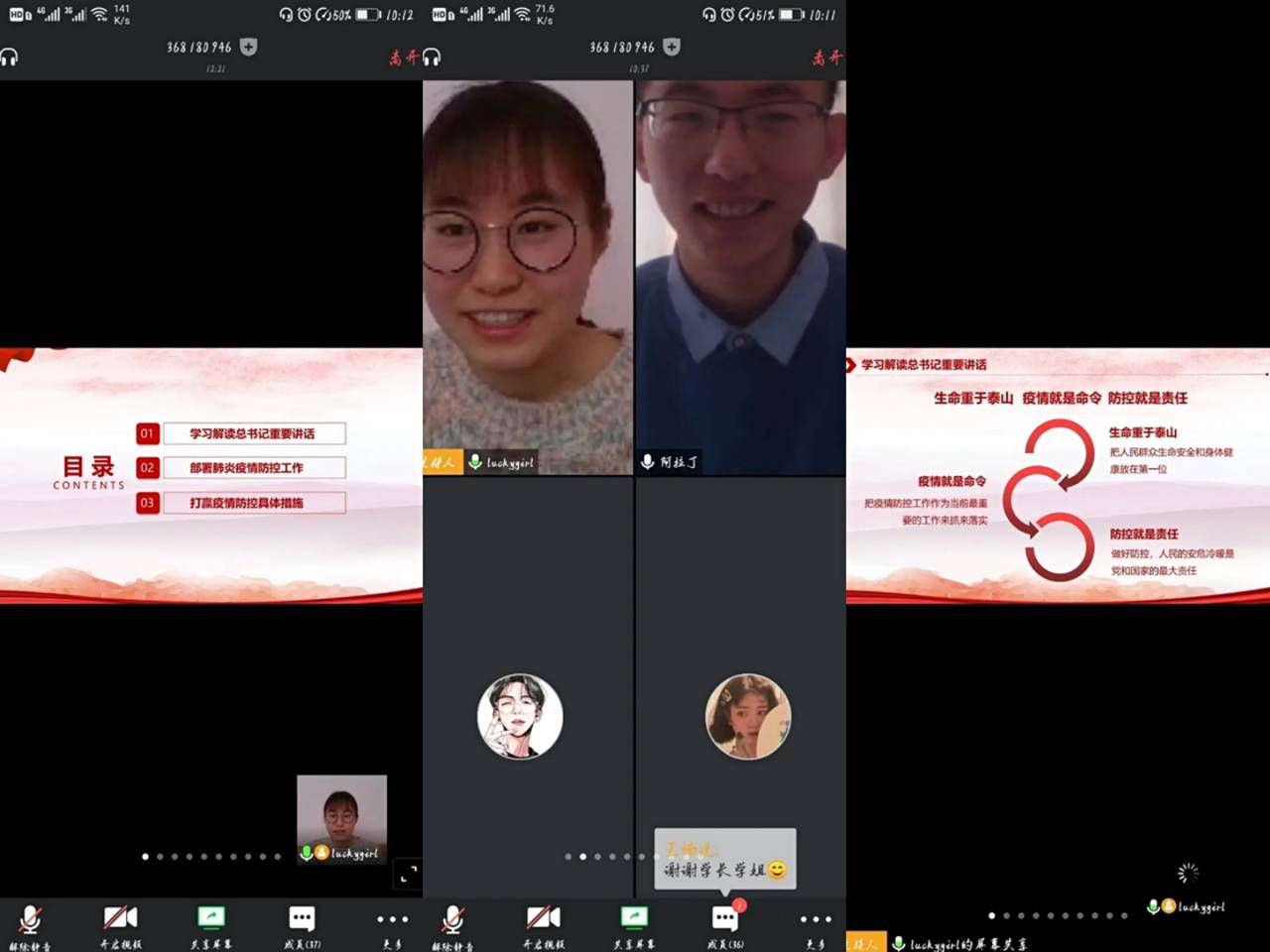 活动开始后,同学们在负责人的引导下,根据提前发布的会议号与登录密码进入平台。驻班党员就疫情阻击战中体现的民族精神、疫情对国际形势的影响等问题发表了自己的看法,着重强调了民族精神的弘扬,不仅要靠一线奋战的医护人员,更需要国民同舟共济、众志成城,凝聚全民战力量,同时,鼓励全体成员学习并发扬雷锋精神,积极传递温暖与关怀。驻班党员邀请同学们共同讨论交流了网课学习过程中遇到的问题,针对同学们的课程学习情况提出具体建议,强调网课学习不能怠慢,要以积极的心态对待,并针对同学们提出的问题,如:课堂笔记的使用、课件重点的把握、学习效率的提高等做出详细解答。此外,驻班党员呼吁同学们提前为开学做准备,规律地调整作息时间以适应课程安排。