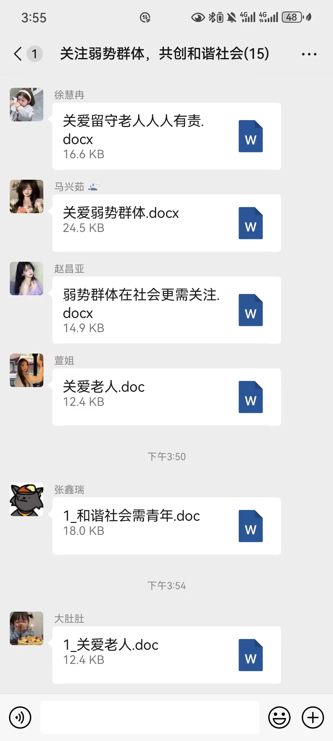 活动负责人王富倩对参与活动人员进行点名,而后进行此次活动PPT的讲解,本次宣讲活动内容涉及阐述弱势群体名称的由来历史及弱势群体的包含范围,并列举近几年来有关弱势群体合法权利受到侵害以及受到不公待遇的真实案例。其中,活动参与者陈亿凡表示,社会不仅需要我们青年一代发出正义之声,也需要我们担负起自己的社会责任,切实地去关注社会弱势群体,真正的行动起来。王富倩再次组织参与活动的人员进行一次经验分享交流,王富倩首先分享自己所知的弱势群体遭遇的不公待遇,并鼓励大家积极发言,动员参与人员敢于帮助弱势群体,勇于为弱势群体发声,为共创和谐社会贡献自己的一份力量。孙源源表示参加此次活动对于增强自己的社会责任感起到重要作用,希望新时代的青年可以共同努力,共创和谐社会,让每个人都享受公平、有尊严的生活。